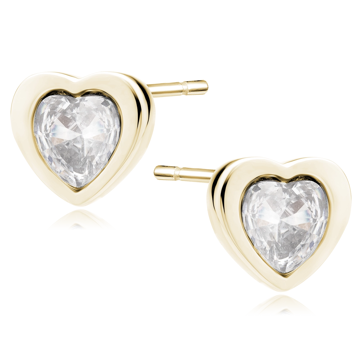 Kolczyki srebrne pozłacane w kształcie serca, wykonane ze srebra próby 925 i pokryte warstwą złota. W centralnej części każdego kolczyka osadzona została biała cyrkonia o szlifie serca, która nadaje biżuterii subtelnego blasku i romantycznego charakteru. Zapięcie na sztyft zapewnia wygodę i bezpieczeństwo noszenia. Delikatne i kobiece – doskonałe jako prezent lub dodatek do codziennych i wyjątkowych stylizacji.