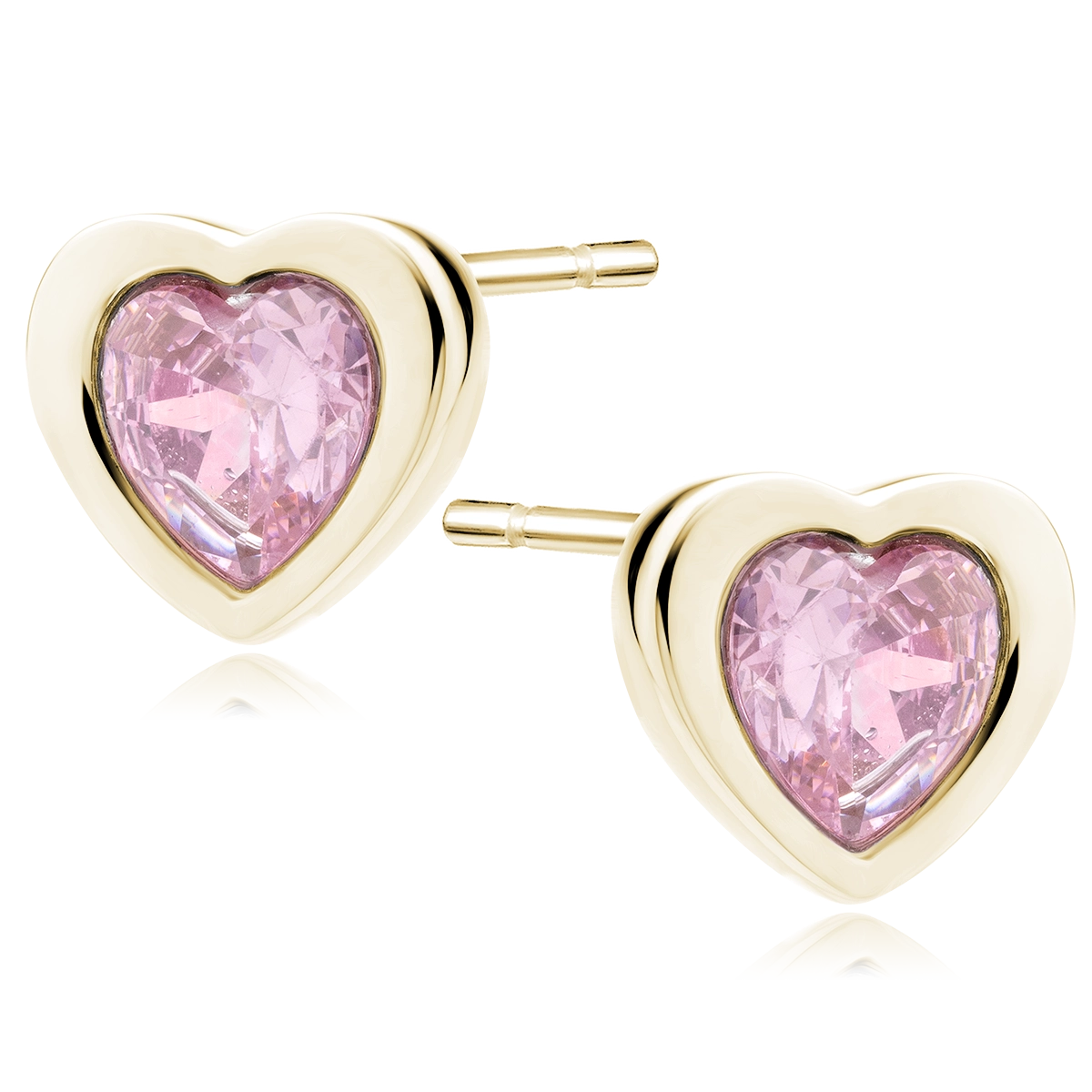 Kolczyki srebrne pozłacane w kształcie serca, wykonane ze srebra próby 925 i pokryte warstwą złota. W centralnej części każdego kolczyka osadzona została różowa cyrkonia o szlifie serca, która nadaje biżuterii subtelnego blasku i romantycznego charakteru. Zapięcie na sztyft zapewnia wygodę i bezpieczeństwo noszenia. Delikatne i kobiece – doskonałe jako prezent lub dodatek do codziennych i wyjątkowych stylizacji.