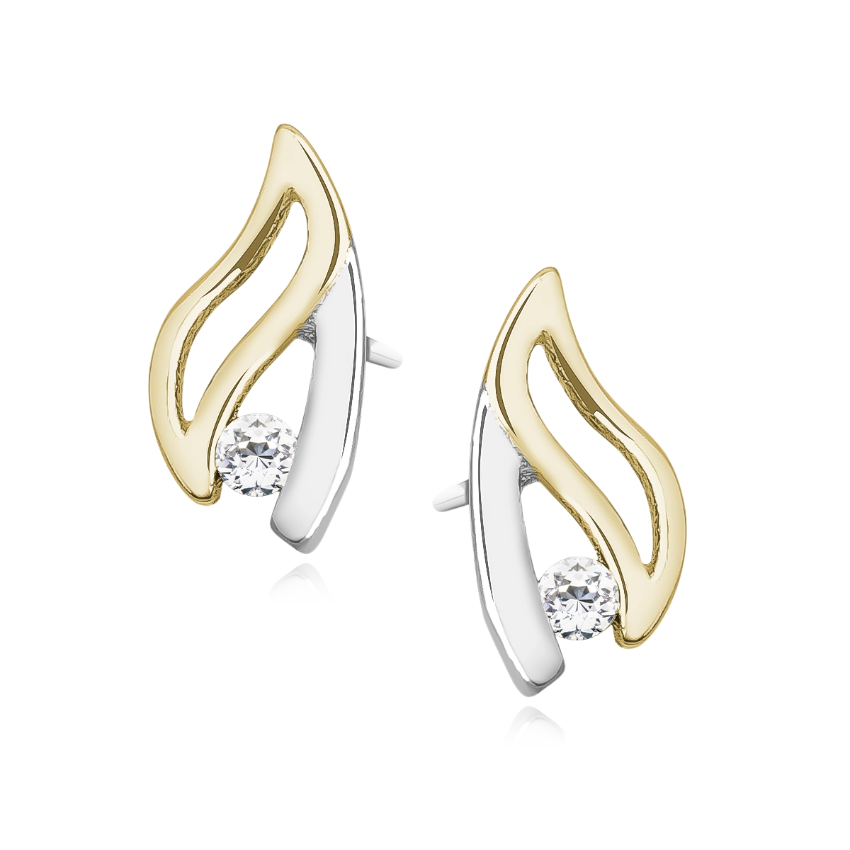 Kolczyki srebrne próby 925, rodowane, z delikatnym, pozłacanym elementem i subtelną białą cyrkonią, która dodaje blasku. Zapięcie na sztyft zapewnia wygodę noszenia. Idealne na co dzień i na wyjątkowe okazje.
