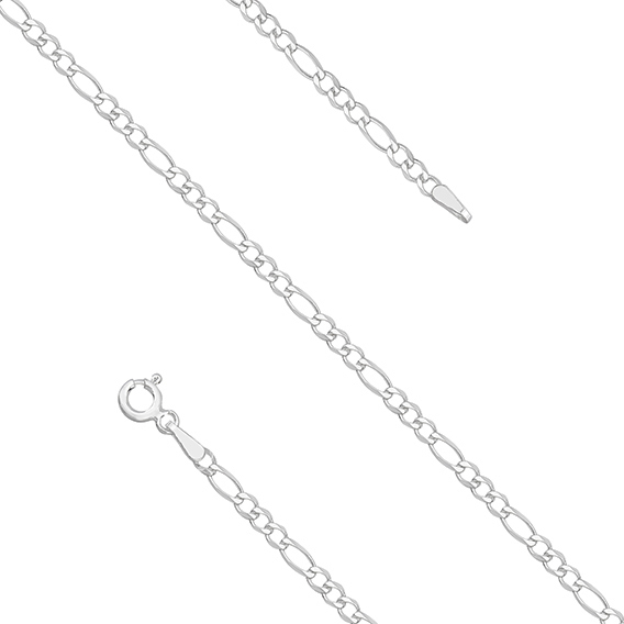 Srebrny łańcuszek Figaro o szerokości 2,5 mm, wykonany z wysokiej jakości srebra próby 925. Klasyczny, elegancki splot łączy krótsze i dłuższe ogniwa, tworząc stylowy efekt. Zapięcie typu federing zapewnia komfort i bezpieczeństwo noszenia.