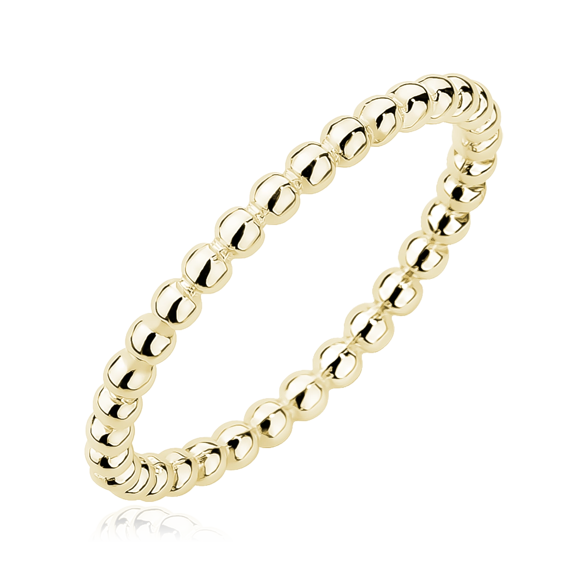 Pierścionek srebrny pozłacany Kulki, wykonany ze srebra próby 925, pokryty warstwą złocenia. Bardzo delikatny, subtelny model o obrączkowym kształcie – szyna składa się z drobnych kuleczek, tworzących elegancką, lekką kompozycję. Minimalistyczny i uniwersalny, idealny do codziennego noszenia lub jako uzupełnienie innych pierścionków w stylu stacking.