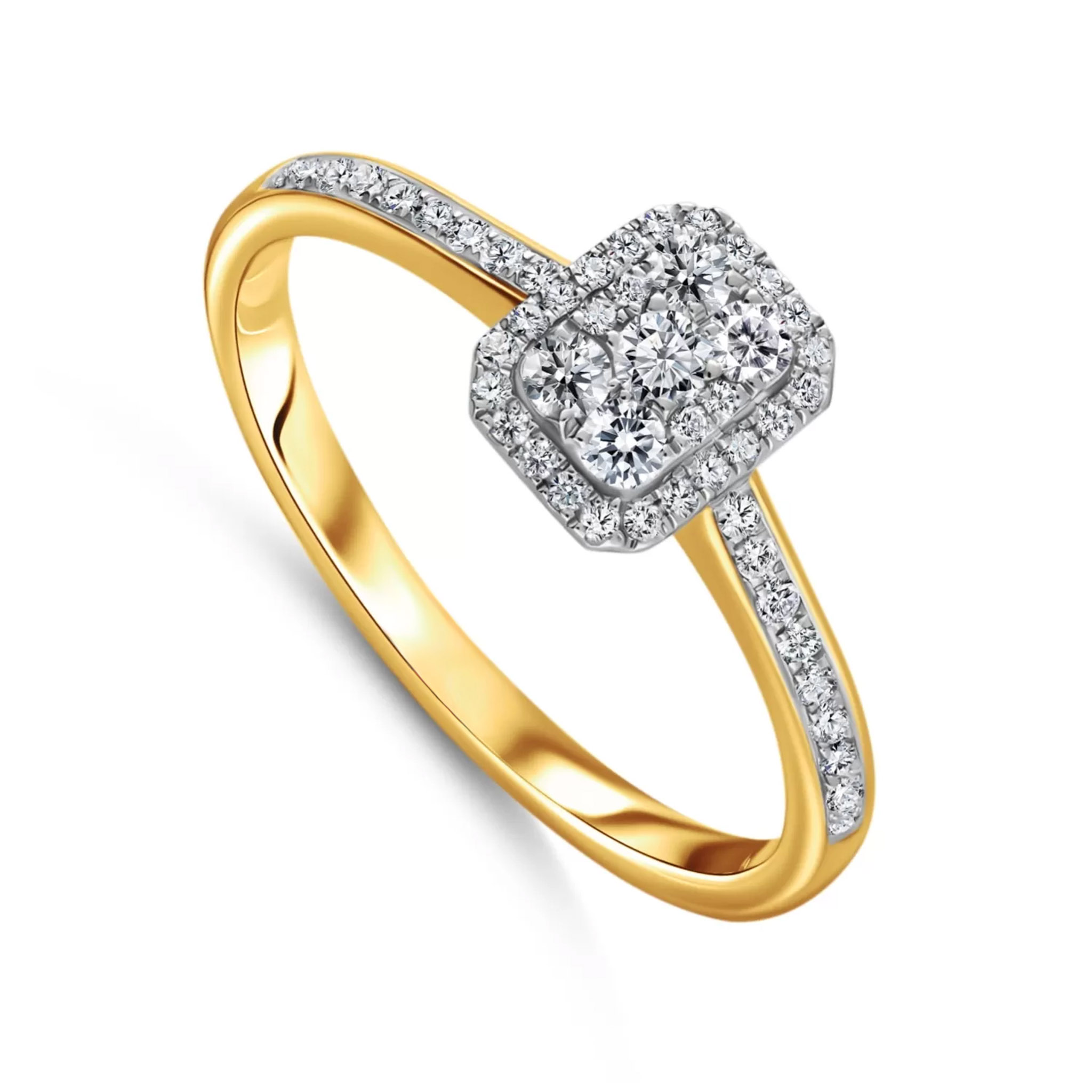 Wyjątkowo elegancki pierścionek wykonany ze złota próby 585. Górna część o prostokątnym kształcie, wykonana z białego złota, została w całości wypełniona lśniącymi brylantami, które tworzą efekt tafli światła. Dodatkowe brylanty zdobią również szynę, podkreślając luksusowy charakter biżuterii. Całość składa się z 49 brylantów, które zachwycają intensywnym blaskiem. Idealny wybór na wyjątkowe okazje i elegancki prezent.