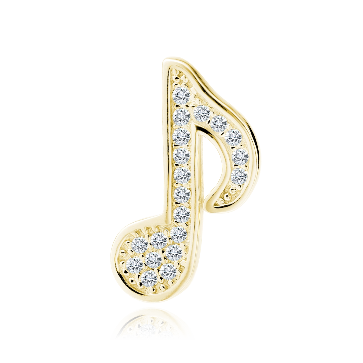 Srebrna pozłacana zawieszka próby 925 w kształcie nutki, subtelnie zdobiona białymi cyrkoniami, które dodają jej blasku. To wyjątkowy model, idealny dla miłośników muzyki i osób ceniących oryginalne dodatki. Świetnie komponuje się zarówno z codziennymi, jak i eleganckimi stylizacjami.