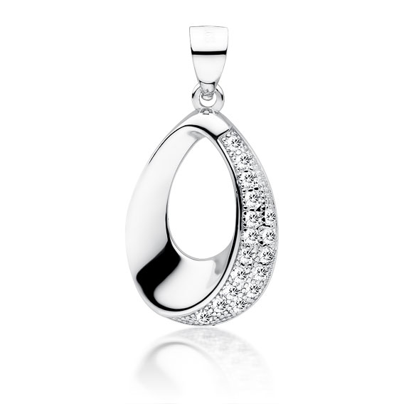 Srebrna zawieszka próby 925 o owalnym kształcie, zdobiona lśniącymi cyrkoniami, pokryta rodem dla efektownego połysku i ochrony przed matowieniem. To uniwersalny dodatek, który doskonale sprawdzi się zarówno w codziennych, jak i wyjątkowych stylizacjach.