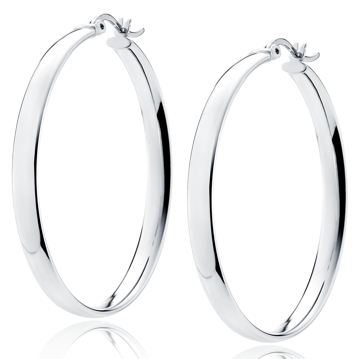 Srebrne kolczyki próby 925 w kształcie eleganckiego, szerokiego koła o średnicy 40 mm i szerokości 4 mm. Kolczyki są puste w środku, co nadaje im lekkiego i nowoczesnego charakteru. Pokrycie rodem podkreśla połysk srebra i chroni biżuterię przed matowieniem, a zapięcie typu szarnir zapewnia wygodę i bezpieczeństwo noszenia. To efektowny dodatek, który świetnie sprawdzi się w codziennych i wieczorowych stylizacjach.