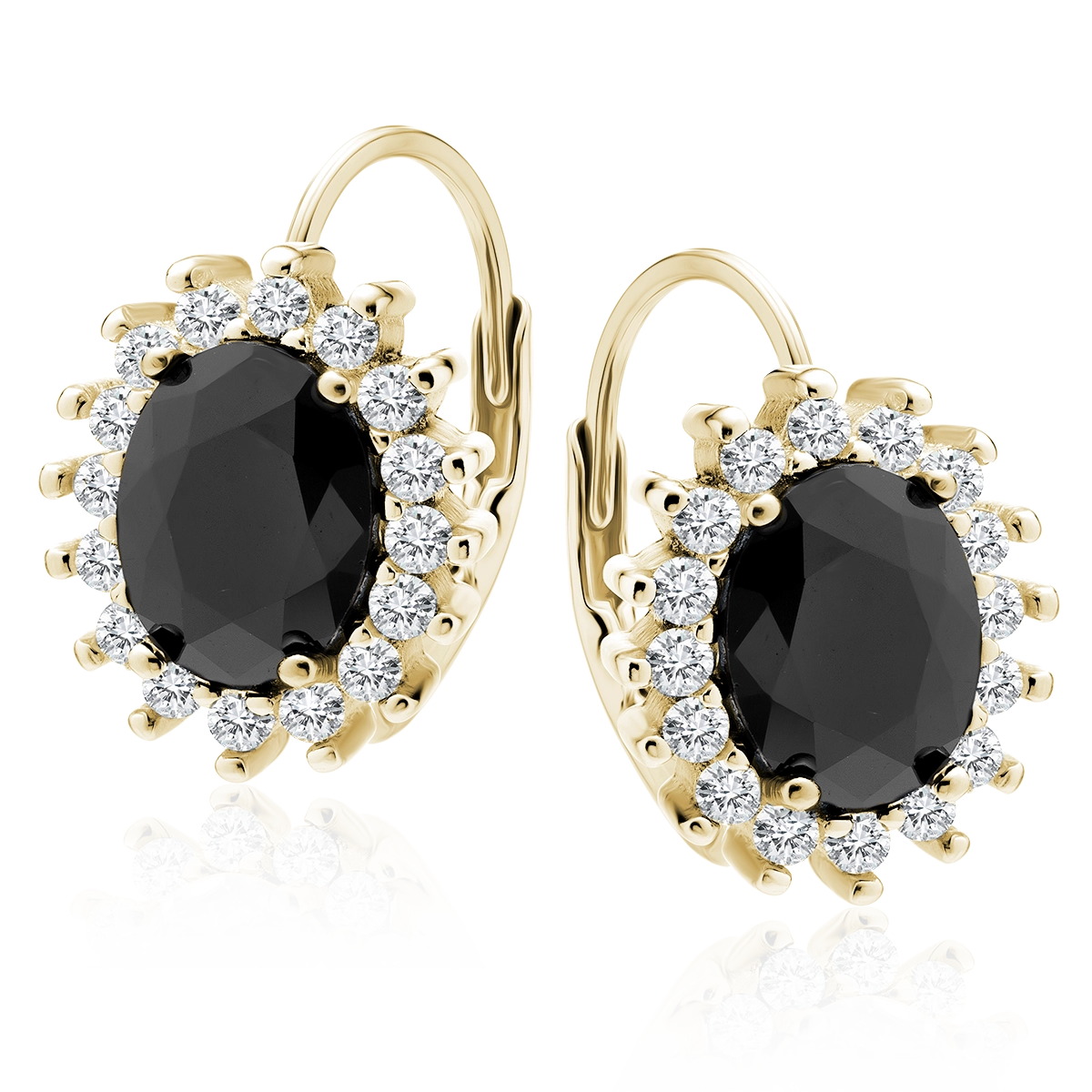 Srebrne kolczyki pozłacane próby 925 w kształcie eleganckiej karmazycji to połączenie klasyki i wyrazistości. W centralnej części umieszczona została duża czarna cyrkonia, otoczona drobnymi, białymi cyrkoniami, które pięknie podkreślają kontrast barw i dodają całości wyjątkowego blasku. Zapięcie typu bigiel angielski zapewnia wygodę i bezpieczeństwo noszenia. To biżuteria idealna dla kobiet ceniących elegancję z nutą oryginalności.