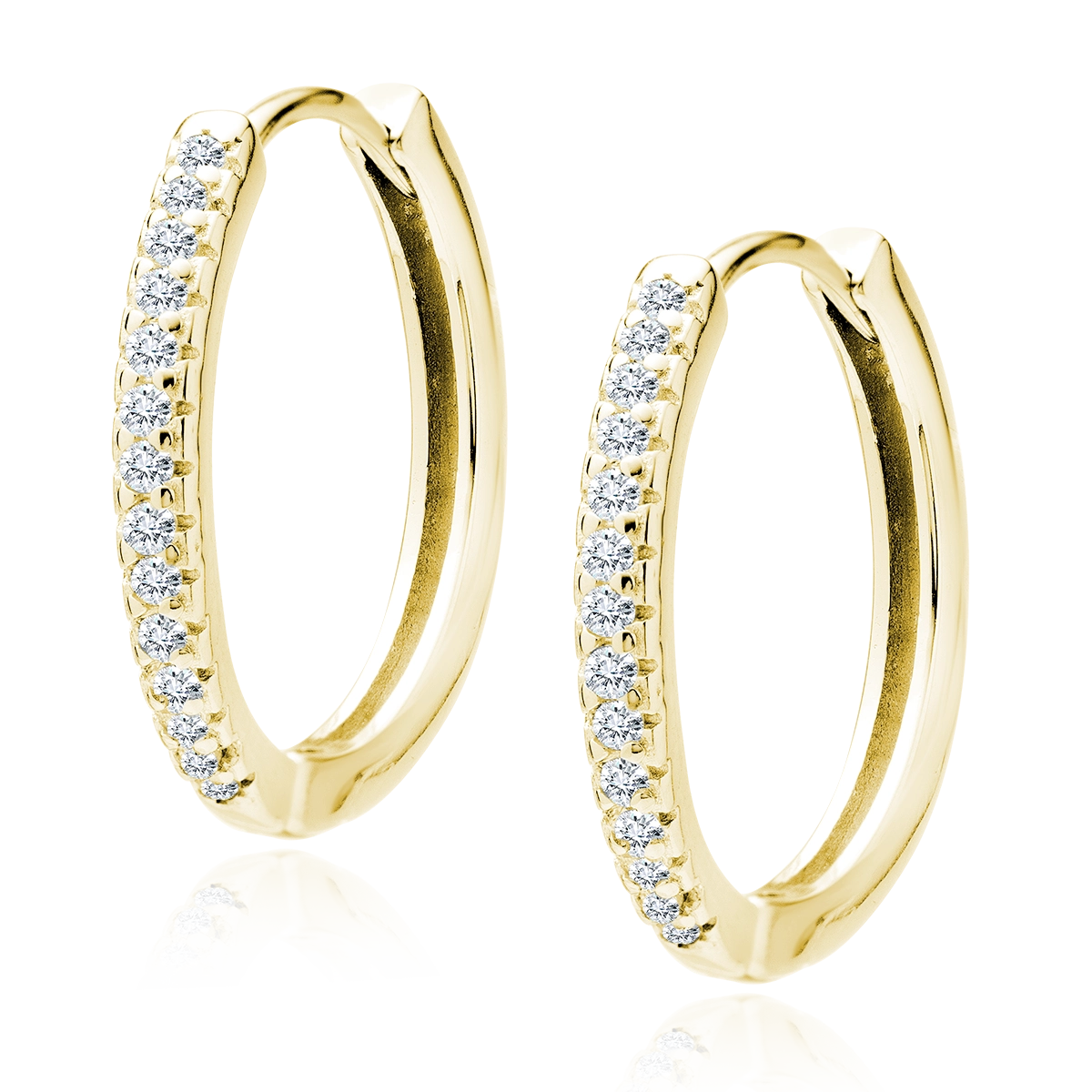 Pozłacane srebrne kolczyki w kształcie koła z białymi cyrkoniami to elegancki dodatek, który doda blasku każdej stylizacji. Wykonane z wysokiej jakości srebra próby 925, pokrytego warstwą złota, te kolczyki łączą w sobie klasyczny design z nowoczesnym wykończeniem. Białe cyrkonie, starannie osadzone wzdłuż frontowej części kolczyków, przyciągają wzrok i dodają im wyjątkowego uroku. Kształt koła sprawia, że kolczyki są uniwersalne i pasują do wielu stylizacji. Zapięcie zatrzask zapewnia wygodę noszenia i bezpieczeństwo, dzięki czemu kolczyki są idealne na co dzień, jak i na specjalne okazje. Wybierz te kolczyki, aby podkreślić swoją elegancję i styl.