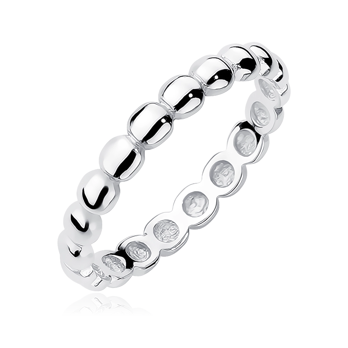 Srebrny pierścionek Kulki, wykonany ze srebra próby 925. Delikatny, obrączkowy model o subtelnej formie – cała szyna uformowana jest z drobnych, regularnych kuleczek, co nadaje mu lekkości i nowoczesnego charakteru. Powierzchnia rodowana, dzięki czemu pierścionek zyskuje trwały połysk i odporność na ciemnienie. Idealny do noszenia solo lub w zestawieniu z innymi pierścionkami.