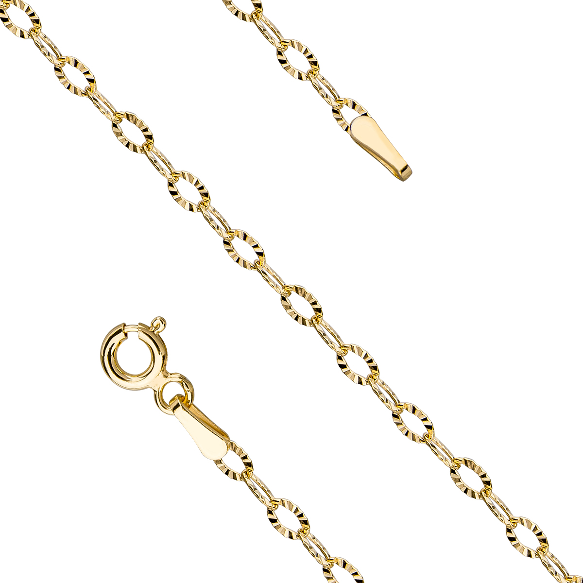 Srebrny pozłacany łańcuszek o dekoracyjnym splocie zbliżonym do klasycznego ankra. Subtelny i elegancki, idealny do noszenia solo lub z zawieszką. Wykonany ze srebra próby 925, zakończony wygodnym zapięciem typu federing.