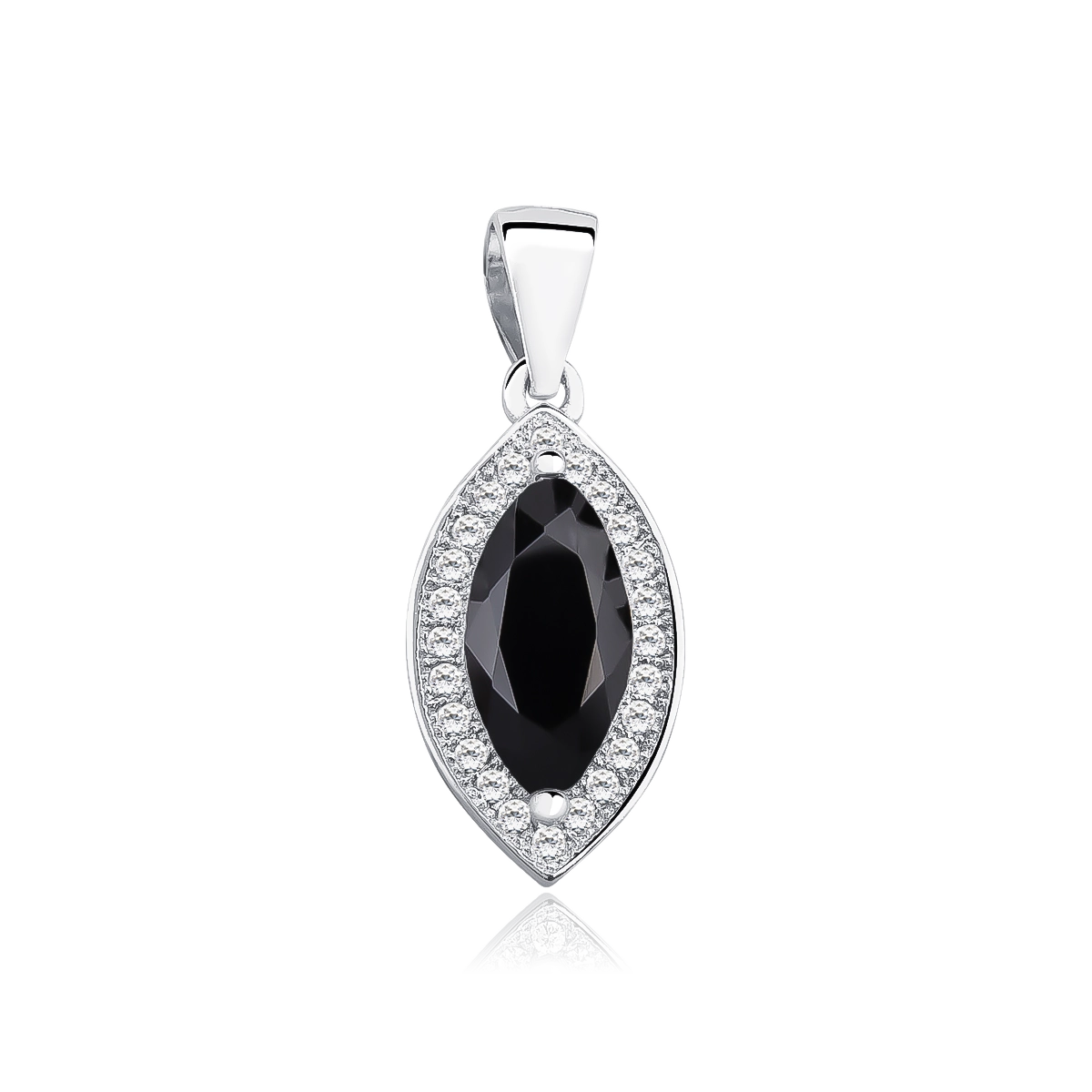 Srebrna zawieszka próby 925 o owalnym kształcie, z centralnie osadzoną czarną cyrkonią otoczoną rzędem lśniących białych cyrkonii. Pokrycie rodem podkreśla blask kamieni i chroni biżuterię przed matowieniem. Elegancki i kobiecy dodatek, który doskonale sprawdzi się przy różnych okazjach.