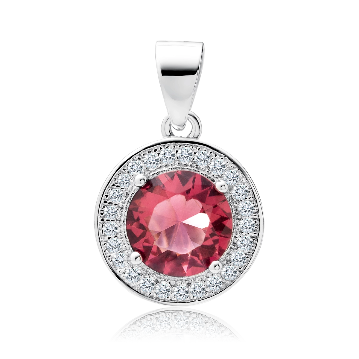 Srebrna zawieszka próby 925 z centralnie osadzoną większą różową cyrkonią, otoczoną drobnymi, lśniącymi białymi cyrkoniami. Pokrycie rodem nadaje biżuterii elegancki połysk i chroni ją przed matowieniem. To efektowny dodatek, który pięknie uzupełni zarówno codzienne, jak i wieczorowe stylizacje.